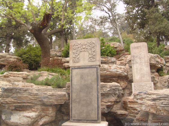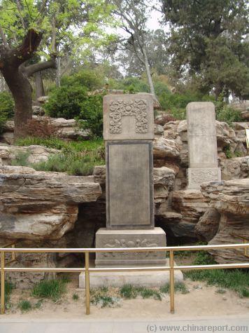 Two Commemorative Steles erected in honor and memory of the Chongzhen Emperor stand on Rocks near the Tree.